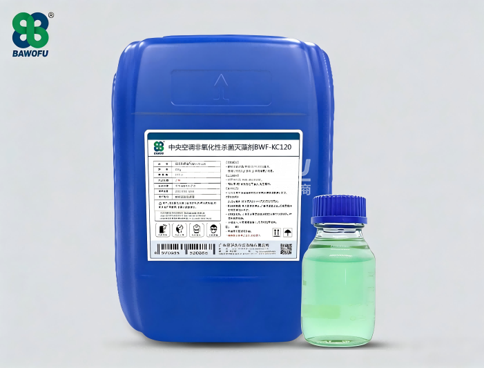 中央空调非氧化性杀菌灭藻剂BWF-KC120采用冲击式投加,常规用量为100-200mg/L,每5-7天投加一次,可有效杀灭菌藻。若藻类密集需快速剥离,可酌情增加用量并及时清理浮物;泡沫过多干扰生产时,可添加消泡剂。实际投加量应结合水质状况确定。